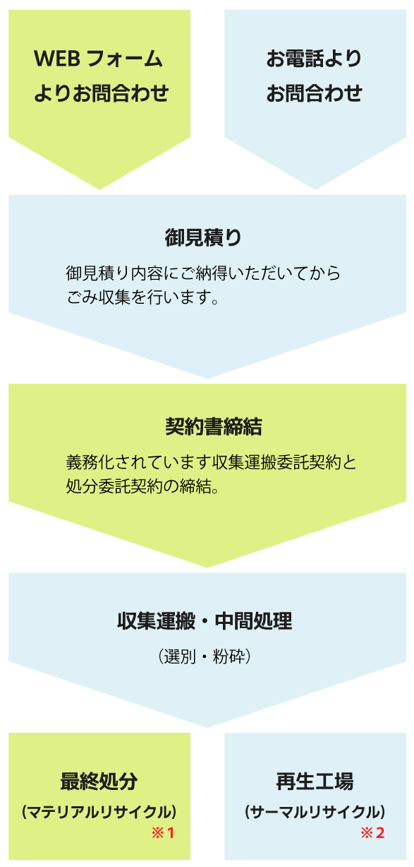 産業廃棄物を収集し、中間処分まで一括して承っております。